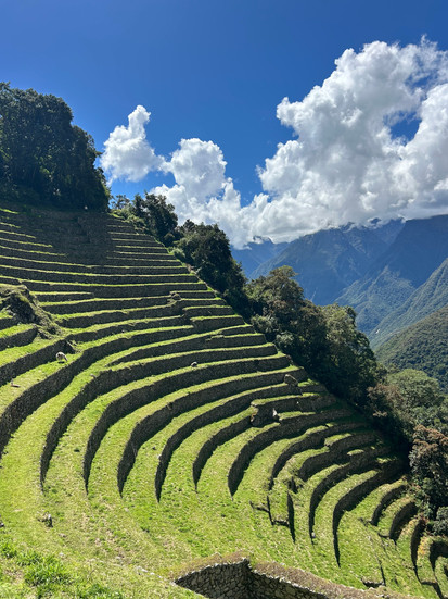 After reaching the top, we stopped for lunch near an Incan ruin called Wiñay Wayna before continuing a more gradual hike. After 7 miles and about 5 hours, we reached the Sun Gate where we got our first look at Machu Picchu. The sun was shining and it was breathtaking. We got lucky with the weather because apparently the previous days were pouring rain. We then kept walking toward Machu Picchu and got to explore the upper terraces and enjoy the view. After this we took a bus down to Aguas Calientes for dinner and an overnight stay which were both included in our hiking package.